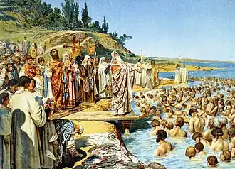 A historiografia tradicional atribui o Batismo da Rússia ao ano de 988, embora, segundo alguns historiadores eclesiásticos, hajam motivos para acreditar que o ano de 987 seja uma data mais provável.[12]