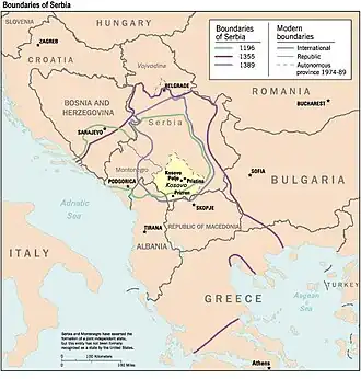 Durante a Idade Média o país gozou de um curto apogeu durante o reinado de Estêvão Uresis IV (1331-1355), seguido de um rápido declínio. O Império desintegrou-se e caiu nas mãos do turcos otomanos depois da histórica Batalha do Cosovo ou (Kôssovo Poliê, "Campo dos Melros"), em 1389.