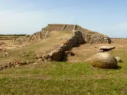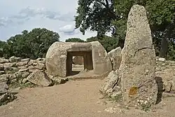 Existem outras construção típicas de épocas pré-nurágicas e intermédias: os domus de janas (tradução: casas de fadas) escavadas em granito, que eram usadas para inumar os mortes, os túmulos de gigantes, de dimensões ciclópicas e muito frequentes no interior da ilha, e monumentos megalíticos, nomeadamente menires.[nt 1]
