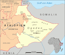 - ↑ Zahl von Countrystudies.us: Somalia – Foreign Relations; die Barre-Regierung gab überhöhte Zahlen bis hin zu 1,8 Mio. an, um mehr humanitäre Hilfe zu erhalten.