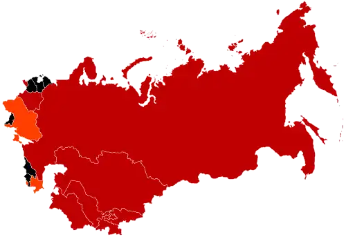 De 1917 a 1922, o estado antecessor da União Soviética era a República Socialista Federativa Soviética Russa, que era um país independente, assim como outras repúblicas soviéticas na época. A URSS foi oficialmente criada em dezembro de 1922 como a união das repúblicas russa (coloquialmente conhecida como Rússia Bolchevique), ucraniana, bielorrussa e transcaucasiana, todas repúblicas soviéticas governadas por partidos bolcheviques.