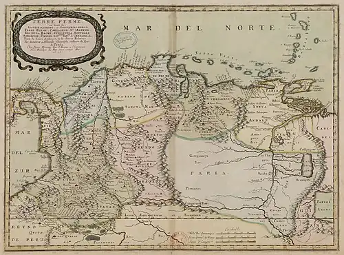A colonização espanhola do território continental da Venezuela teve início em 1502. A Espanha estabeleceu seu primeiro assentamento permanente na América do Sul no que viria a ser a cidade de Cumaná. Na época da chegada espanhola, os índios viviam principalmente em grupos como agricultores e caçadores – ao longo da costa, na cordilheira andina e às margens do Rio Orinoco.