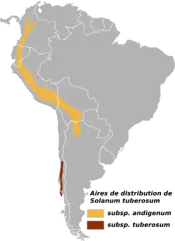 É ainda nos Andes que se observam hoje as maiores variações genéticas das espécies e variedades de solanáceas de tubérculo, com centenas de espécies selvagens e mais de 400 variedades indígenas de batatas cultivadas.[15]