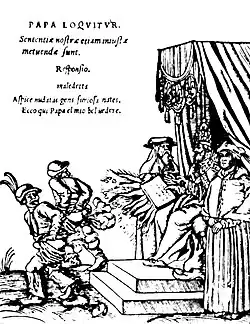- ↑ Em latim, o título diz "Hic oscula pedibus papae figuntur".
