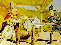 Além disso, e ainda na leitura das correntes políticas europeias derivadas da Revolução Francesa e Americana, esta Revolução de 1881 vai tomar um caráter nacionalista. Um território afastado e isolado como era o andorrano, sem quaisquer interesse, tornou-se, de repente, no objeto de estudo e cobiça. O império francês, em pleno auge colonialista, resolve de uma política intervencionista e colonialista sobre Andorra com o objetivo de fazer entrar o território em órbita francesa e assim incorporá-lo ao império colonial. O co-prínicipe episcopal, parente esta política, resolve por sua vez pedir ajuda a Espanha e esta socorre, também com o objetivo de fazê-la entrar em órbita hispânica. Entra-se num período de conflito pela posse de Andorra chamado de “Questão de Andorra” (em catalão, La Qüestió d'Andorra). Três gigantes, França, Igreja Católica e Espanha, resolvem guerrear por meios não convencionais.[6][7][41]