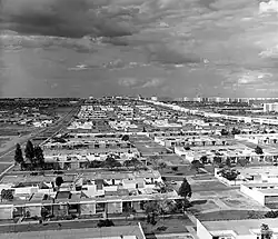 - 1956-1976: Período da construção e transferência de funcionários e órgãos administrativos e início do estabelecimento de um modelo polinucleado de ocupação com a formação de cidades-satélites. Ao mesmo tempo se inicia a Campanha de Erradicação de Invasões, com a remoção de populações dos assentamentos primitivos e das primeiras favelas que se formaram logo em seguida, em torno ao Plano Piloto.[78]