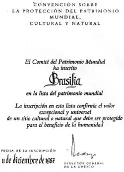 - ↑ 7 de dezembro de 1987 - Brasília é declarada Patrimônio Cultural da Humanidade. Jornal do Brasil Online, 07/12/2009 - 13:43