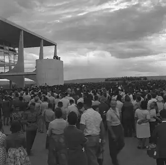 Desde então a voz popular encontrou na passeata, no comício e em outros movimentos de rua em Brasília um fórum de expressão privilegiado, ocorrendo intimamente próximos à fonte do poder nacional e exercendo, por isso, uma pressão política significativa. Outros momentos marcantes, além dos citados, em que o povo expressou em multidões seus direitos de reivindicar, protestar ou celebrar foram na conquista do campeonato mundial de futebol em 1970, com mais de cem mil pessoas nas ruas,[118] no caso do impeachment do presidente Fernando Collor de Mello, acusado de corrupção, quando grandes procissões de carros bloquearam o tráfego e o presidente foi vaiado em público por oito minutos consecutivos, em 9 de novembro de 1992,[119] e na eleição de Lula, o primeiro operário a conquistar a dignidade presidencial, visto pelas massas do povo como uma esperança de dias melhores. A cerimônia de sua posse teve um público de 150 a 250 mil pessoas, conforme a fonte, comemorando o evento em uma grande festa a céu aberto. Várias manchetes dos jornais pelo Brasil fizeram eco: "Povo toma as ruas e solenidade vira celebração" (O Estado de S. Paulo), "Nem chuva empana o calor da festa" (Jornal de Brasília), "A verdadeira festa popular do Brasil" (Tribuna do Brasil), "O povo o abraça, Presidente Lula" (Tribuna da Imprensa), e outras no mesmo tom.[120]