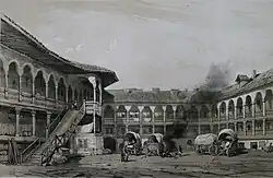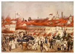 Quando a ocupação russa terminou em 1834, o trono do principado foi ocupado por Alexandre II Ghica (r.1834 1842). Durante o seu primeiro mandato, que durou até 1842, a concessão de direitos comerciais aos Principados e a integração de Brăila na Valáquia assegurou um renascimento económico.[72] Foram pavimentadas mais ruas e foi construído um novo palácio principesco, que depois seria substituído pelo muito maior palácio real, onde atualmente está alojado o Museu Nacional da Roménia.[73][74] A cidade foi afetada por um sismo de pouca gravidade em janeiro de 1838 e por uma grande cheia em março de 1839.[75]