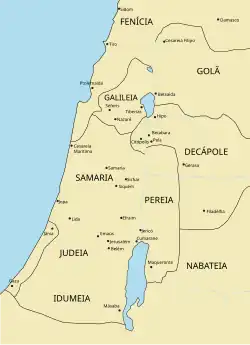 Em 64 a.C. o general romano Pompeu conquistou Jerusalém e fez o reino judeu um estado-vassalo de Roma. Em 57−55 a.C. Aulo Gabínio, procônsul da Síria, dividiu o antigo reino em Galileia, Samaria e Judeia, com cinco sinédrios (côrte de juízes).[18] Em 40−39 a.C. Herodes, o Grande foi apontado Rei dos Judeus pelo senado romano ,[19] mas em 6 d.C. seu sucessor, Herodes Arquelau, etnarca da Judeia, foi deposto pelo imperador Augusto e seus territórios anexados à Judeia sob administração romana direta: esse fato marcou o fim de Judá como um reino mesmo teoricamente independente.[20]