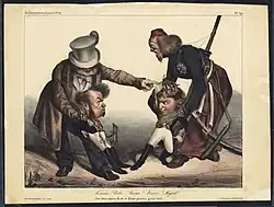 - ↑ A "Gazeta de Lisboa" publicou a 12 junho de 1826 a abdicação de D. Pedro IV, que estaria condicionada à aceitação da Carta Constitucional portuguesa de 1826 e do casamento de sua filha com seu irmão(Imprensa Nacional, ed. (1826). Gazeta de Lisboa, Números 152-307. [S.l.: s.n.] p. 645).