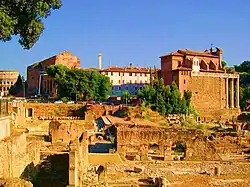 Em 1204, instalava-se novamente o mau ambiente, desta vez confrontando a família do papa Inocêncio III e os seus rivais, os poderosos Orsini, conduzindo a novos distúrbios na cidade. Muitos dos edifícios antigos sofreram a destruição pelas máquinas utilizadas entre os lados rivais para cercarem os seus inimigos nas incontáveis torres e fortalezas, usadas na Itália medieval como símbolo de nobreza.