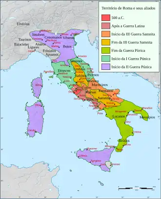 Apesar desses e outros contratempos temporais, os Romanos prosseguiram a sua expansão casual de forma equilibrada. Em 290 a.C., Roma já controlava mais de metade da península Itálica e, durante esse século ainda, os Romanos apoderaram-se também das poleis da Magna Grécia mais a sul.