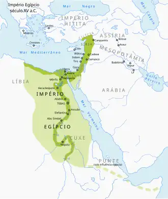Mapa da extensão territorial máxima do Antigo Egito (século XV a.C.)