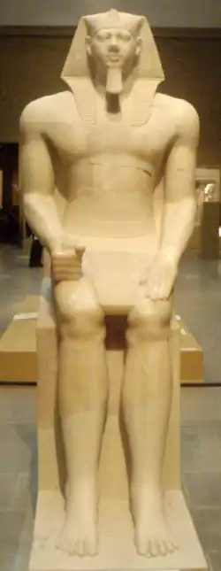 Estátua de Menkaure, feita de alabastro, localizada no Museu de Belas Artes de Boston