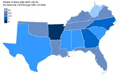 Os Redentores deram aos democratas o controle de todos os estados do Sul (pelo Compromisso de 1877), mas o desenfranchisamento dos negros [en] ocorreu entre 1880 e 1900. De 1880 a 1960, o "Sul Sólido" votou nos democratas nas eleições presidenciais (exceto em 1928). Após 1900, vencer uma primária democrata era "equivalente à eleição [en]", pois o Partido Republicano era extremamente fraco no Sul.[60]