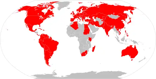 Países com pelo menos 1 membro do Encontro Internacional de Partidos Comunistas e Operários (2023)