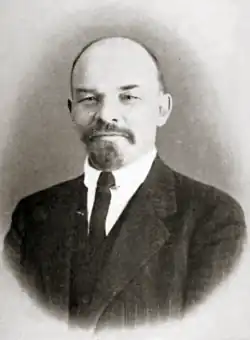Em exílio na Suíça, Lenin desenvolveu a filosofia de Marx e extrapolou a descolonização pela revolta colonial como um fortalecimento da revolução proletária na Europa.[24] Em 1912, Lenin resolveu um confronto à sua liderança ideológica do RSDLP pelo Grupo "Vpiriod" (Russo: Вперёд, IPA: [fpʲɪˈrʲɵt] (ouvir)), no partido, usurpando o Congresso de Todos os Partidos para transformar o POSDR no partido Bolchevique.[25] No início da década de 1910, Lenin permaneceu altamente impopular entre o movimento socialista internacional, e era tão impopular que em 1914 consideraram censurá-lo.[26] Ao contrário dos socialistas europeus que escolheram o nacionalismo belicoso ao internacionalismo anti-guerra, cuja ruptura filosófica e política foi consequência da cisma internacionalista-defencista entre os socialistas, os Bolcheviques opuseram-se à Primeira Guerra Mundial.[27] Essa traição nacionalista ao socialismo foi denunciada por um pequeno grupo de líderes socialistas que se opuseram à Grande Guerra, incluindo Rosa Luxemburgo, Karl Liebknecht e Lenin, que afirmaram que os socialistas europeus tinham falhado as classes trabalhadoras por preferirem a guerra patriótica ao internacionalismo proletário.[27] Para desmascarar o patriotismo e o chauvinismo nacional, Lenin explicou no livro Imperialismo: Fase Superior do Capitalismo (1917) que a expansão económica capitalista conduz ao imperialismo colonial, que é depois regulado com guerras nacionalistas como a Grande Guerra entre os impérios da Europa.[28][29] Para aliviar as pressões estratégicas da Frente Ocidental (4 de Agosto de 1914 - 11 de Novembro de 1918), a Alemanha Imperial impeliu a retirada da Rússia Imperial da Frente Oriental da guerra (17 de Agosto de 1914 - 3 de Março de 1918), enviando Lenin e a sua coorte Bolchevique num comboio diplomaticamente selado, antecipando a sua participação na actividade revolucionária.[30]