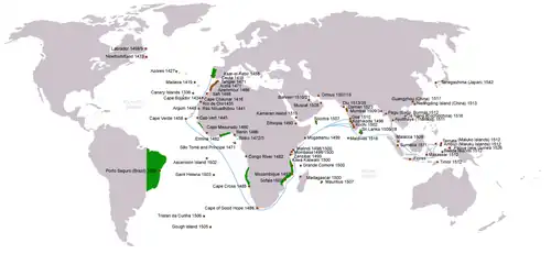 - ↑ «Portuguese Empire» (em inglês). Enciclopédia Online Microsoft Encarta. 2009. Consultado em 9 de maio de 2011. Arquivado do original em 31 de outubro de 2009.