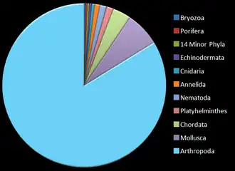 A biota Ediacara, que floresceu nos últimos 40 milhões de anos antes do início do Cambriano,[141] foram os primeiros animais com mais de alguns centímetros de comprimento. Muitos eram planos e tinham uma aparência "acolchoada" e pareciam tão estranhos que houve uma proposta para classificá-los como um reino separado, Vendozoa.[142] Outros, no entanto, foram interpretados como moluscos primitivos (Kimberella[143][144]), equinodermos (Arkarua[145]) e artrópodes (Spriggina,[146] Parvancorina[147]). Ainda há debate sobre a classificação desses espécimes, principalmente porque as características diagnósticas que permitem aos taxonomistas classificar organismos mais recentes, como semelhanças com organismos vivos, geralmente estão ausentes nos Ediacarans. No entanto, parece haver pouca dúvida de que Kimberella' era pelo menos um animal bilateriano triploblástico, em outras palavras, um animal significativamente mais complexo do que os cnidários.[148]