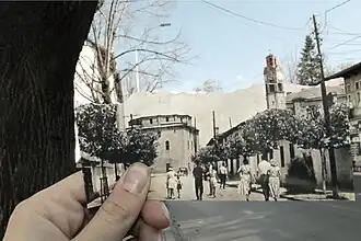 Um exemplo de técnica de fotografia que vem sendo utilizada em projetos de história pública é a refotografia, que consiste em pegar uma foto antiga e tirar uma nova no mesmo ângulo, sobrepondo uma à outra de forma digital ou manual.[70] Neste sentido, a refotografia permite, ao colocar as duas imagens juntas, demonstrar mudanças históricas e as conexões entre espaço e tempo de forma que uma fotografia comum não consegue. Através da sobreposição, se cria um tipo de intertextualidade, que possibilita dar novos sentidos à memória, ao se articular passado e presente no mesmo espaço.[71]