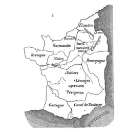 O reino, ducado ou condado da Bretanha não faz parte do reino da França. Além disso o senhor da Bretanha não participa na eleição de Hugo Capeto. Enfim, a rota da costa é muito diferente da que conhecemos, porque os golfos não estão entupidos, em particular na bacia d' Arcachon e o glofe de Saint-Omer, e a foz dos rios evoluem ainda.[17]