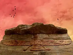 A Vexiloide do Império Aquemênida tinha um falcão de ouro sobre um fundo carmesim.[60][61]
