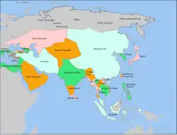 O Império Mongol dos séculos XIII e XIV foi o maior império de terras contíguas da história e o segundo maior império em área, perdendo apenas para o Império Britânico.[2] Originário da Mongólia no Leste Asiático, o Império Mongol chegou a se estender da Europa Oriental e partes da Europa Central até o Mar do Japão, além de também para o norte, em partes do Ártico;[3] para o leste e para o sul no subcontinente indiano, no sudeste da Ásia continental e no planalto iraniano; e para o oeste até o Levante e as montanhas dos Cárpatos. O Império Mongol surgiu da unificação de várias tribos nômades na pátria mongol sob a liderança de Genghis Khan (c. 1162-1227) a quem um conselho proclamou como o governante de todos os mongóis em 1206. O império cresceu rapidamente sob seu domínio e de seus descendentes, que enviaram exércitos invasores em todas as direções. O vasto império transcontinental conectou o Oriente com o Ocidente, o Pacífico com o Mediterrâneo, em uma Pax Mongolica forçada, permitindo a disseminação e troca de comércio, tecnologias, mercadorias e ideologias em toda a Eurásia.