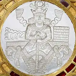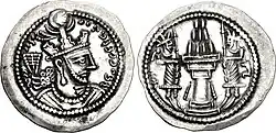 - ↑ «Sasanian crowns». Livius.org. 2005. Consultado em 23 de abril de 2022. Cópia arquivada em 17 de fevereiro de 2022