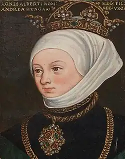 - 1 2 3 4 Duggan, Anne (1997). «A Medieval Queen and her Stepdaughter: Agnes and Elizabeth of Hungary». Queens and Queenship in Medieval Europe: Proceedings of a Conference held at King's College London, April 1995. [S.l.]: The Boydell Press. Consultado em 15 de Março de 2018