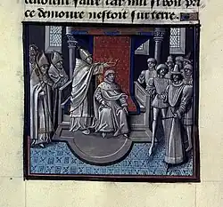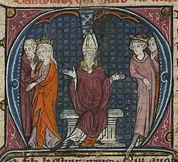 ![]() Iluminura da anulação do casamento de Inês de Courtenay com Amalrico I de Jerusalém. | |||||