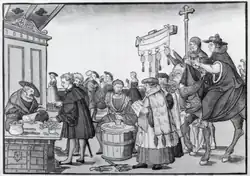 A Igreja Católica reconheceu a existência de abusos praticados por alguns de seus membros ao longo dos séculos, e usou sua autoridade para corrigi-los.[1] Porém distúrbios posteriores na concessão indulgenciária seriam contestadas na Reforma Protestante.[4] Em 1517 o Papa Leão X ofereceu indulgências para aqueles que dessem esmolas para reconstruir a Basílica de São Pedro em Roma.[2] O agressivo marketing de Johann Tetzel em promover esta causa e diversas divergências teológicas descritas posteriormente no manifesto dos Cinco Solas provocaram Martinho Lutero a escrever as 95 Teses (Tetzel seria inclusive punido por Leão X por seus sermões, que iam muito além dos ensinamentos reais sobre as indulgências). Embora Lutero não negasse o direito do Papa ou da Igreja de conceder perdões e penitências (inclusive as defendendo na tese 71),[6] ele afirmava que as indulgências não levariam a alma diretamente ao Céu, uma vez que "o Papa nenhuma pena dispensa às almas no purgatório das que segundo os cânones da Igreja deviam ter expiado e pago na presente vida."[7]