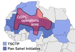 À medida que a campanha de contraterrorismo da Argélia se tornou amplamente bem-sucedida em expulsar a AQMI do país, o grupo estabeleceu novas bases nos países do Sahel, como Níger, Mauritânia, Chade e Mali.[1] Os ataques contra instalações governamentais e militares eram frequentemente subnotificados pela mídia ocidental.[27] Em 2007, os Estados Unidos e o Reino Unido lançaram a Operação Liberdade Duradoura - Trans Sahara em apoio aos governos da região. [7][15]