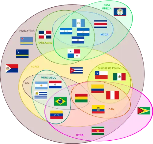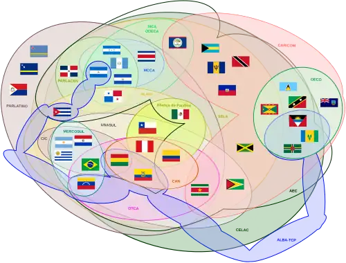 Diagrama das organizações compostas por países latino-americanos e caribenhos. |