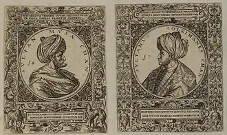 ![]() Representação de Muça e Solimão no final do século XVI, frente a frente | ||||