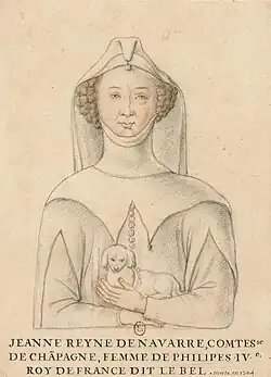![]() Rainha de Navarra e Condessa de Champagne sob regência de Branca de Artois até 1284, com Filipe I a partir de 1284 1274 - 1305 |