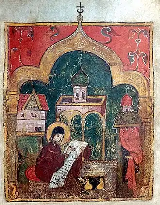 Iluminura num manuscrito anônimo do século XIV na Biblioteca Nacional Russa.