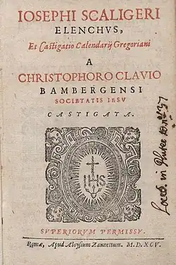 - Iosephi Scaligeri Elenchus et Castigatio calendarij Gregoriani (em latim). Roma: Luigi Zanetti. 1595