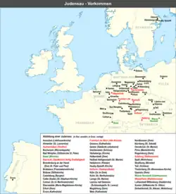- ↑ Schreckenburg, Heinz (1996). The Jews in Christian Art. New York: Continuum. pp. 331-337, Cologne illustrated p. 332, Frankfurt pp. 335-7. ISBN 0-8264-0936-9.