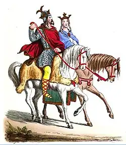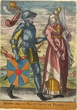 ![]() Representação de Balduíno e Judite do século XV, retirada de uma série de pinturas com os condes de Flandres e os abades de Ten Duinen. | |||||