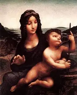 Uma tradição recorrente em Florença era a de pequenos retábulos retratando a Virgem e o Menino. Muitos eram feitos em têmpera ou terracota vitrificada, pelos ateliês de Filippo Lippi, Verrocchio e da prolífica família della Robbia.[53] Leonardo foi contemporâneo de Botticelli, Ghirlandaio e Perugino, embora fossem um pouco mais velhos que ele. Teria conhecido todos no atelier de Verrocchio, com quem eles tinham ligações, e na Academia dos Médici. Botticelli era especialmente preferido pela família Médici, e seu sucesso como pintor era praticamente garantido. Ghirlandaio e Perugino eram prolíficos, e também geriam grandes ateliês; foram responsáveis por comissões realizadas com competência, para patronos satisfeitos, que apreciavam a habilidade de Ghirlandaio de retratar os cidadãos ricos de Florença em grandes afrescos religiosos, e a habilidade de Perugino em criar multidões de santos e anjos de inescapável doçura e inocência.[53]