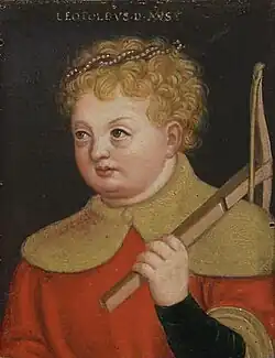 Os filhos de Otto por sua primeira esposa, Elizabeth da Baviera, filha de Stephen I, duque da Baviera por seu casamento com Jutta de Schweidnitz, após a morte de seu pai em 1339, Leopold e seu irmão Frederico II (1327–1344) eram ambos duques titulares da Áustria, mas ambos morreram antes da maioridade.[1]