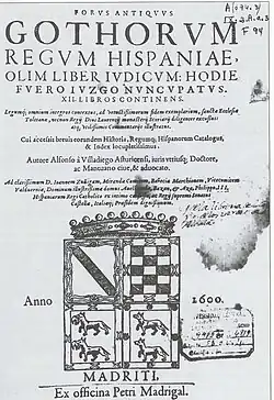 Capa de uma edição do Liber Iudiciorum do ano 1600
