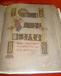 O Evangelho segundo Mateus, como manda a norma, começa com uma genealogia de Jesus: o relato propriamente dito da vida de Cristo não se inicia até o versículo 1:18, que é considerado, por este motivo, como o segundo início deste Evangelho. O Livro de Kells trata este segundo início com uma ênfase digna de um texto separado. Esta parte do Evangelho de Mateus começa pela palavra Cristo, que os manuscritos medievais tinham por costume abreviar com as duas letras gregas Qui e .