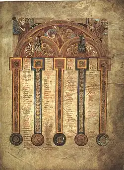 O 5 °Fólio é uma das páginas dedicadas às tábuas canónicas de Eusébio de Cesareia