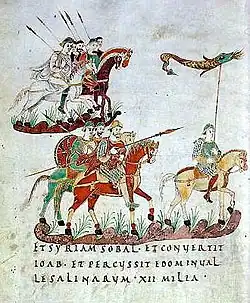 Cavalaria carolíngia do  Psalterium aureum (St. Gallen, Stiftsbibliothek, Cod. 22, p. 140).