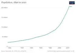 | • Estimativa para 2022 | 22 395 489[3] hab. |