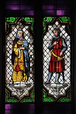 ![]() Vitral de Maria e Pedro na Capela de Santa Ágata, parte do Palácio Real Maior, em Barcelona. | |||||