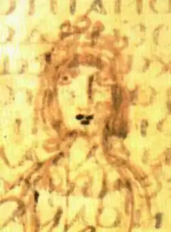 ![]() Imagem da imperatriz num manuscrito iluminado, hoje presente na Biblioteca Nacional Vítor Emanuel III, em Nápoles. | |