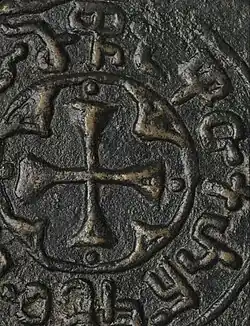 - [e] ^ O primeiro rei georgiano a assumir o título de "mefet[a]mefe" foi Gurgenes II (r. 994–1008),[60] mas o termo se tornaria absoluto e universal durante e depois de Davi IV.[61][62] O título de Gurgenes é elaborado pelo cronista encomendado pelos bagrátidas, Simbácio, filho de Davi, explicando que Gurgenes era um mefe e pai de outro mefe. Gurgenes governou o Reino dos Iberos, enquanto seu filho, Pancrácio III, liderou o Reino da Abecásia.[63]